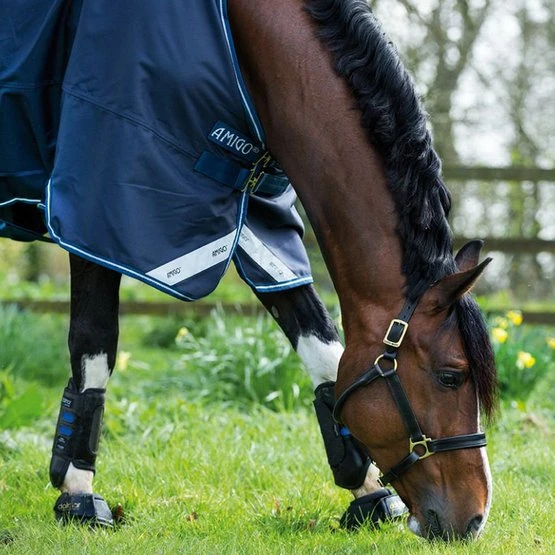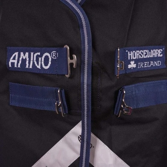 Die Amigo 12 Turnout Lite ist eine 0g Weidedecke mit einem wasserdichten, strapazierfähigem und atmungsaktivem 1200D Polyester Außenstoff und einem glatten Polyester Innenfutter, was dem Fell Glanz verleiht. Sie besitzt Reflektorstreifen für eine optimale Sicht im Dunkeln oder bei Dammerung. Für diese Decke ist zusätzlich ein separates Halsteil erhältlich. Die Decke ist für das Linersystem geeignet und besitzt Befestigungsringe für Horseware Liner und Halsteile. Zudem besitzt die Decke eine Vorderbeinaussparung für eine gute Passform und einen doppelten Hakenverschluss an der Brust. Außerdem befinden sich unter dem Bauch Kreuzgurte, ein abnehmbarer Schweifriemen und ein Schweiflatz.