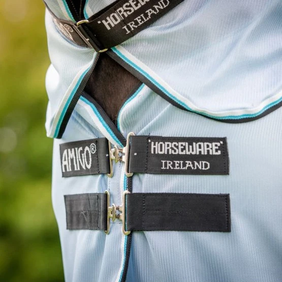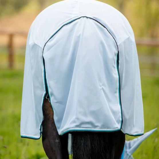 Silberfarbenes Außenzelt aus weichem, feinmaschigem und sonnenreflektierendem Polyester. Das Genickstück ist abnehmbar und der lange Schweiflappen schützt Ihr Pferd gut vor Insekten. Decke ist mit dem Horseware Liner System ausgestattet.