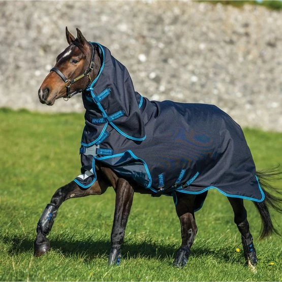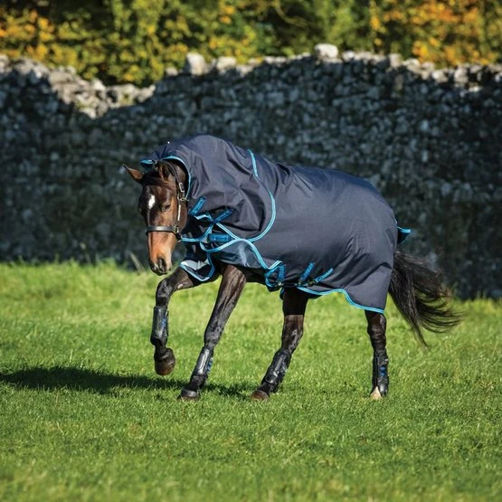 De Amigo Bravo 12 Plus Turnout Bundle is een waterdichte en ademende deken met een sterke 1200D polyester buitenkant. Deze deken is uitgerust met de Surefit Neck Design voor een mooie pasvorm en optimale bewegingsvrijheid tijdens het grazen. Verder heeft deze deken anatomisch gevormde beenbogen, reflectiestrepen, drie buiksingels en een met kunststof afgewerkte bilriem. De hals is afneembaar. Deze dekenbundel wordt geleverd met een 50 grams outdoordeken, 50 grams hals en twee liners van 100 en 300 gram. |