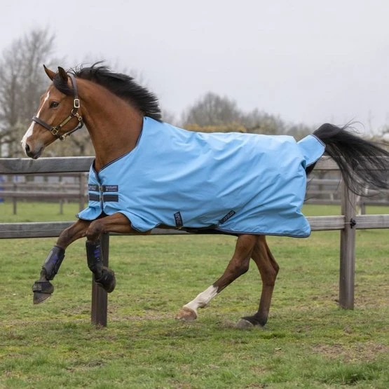 Robustes und haltbares 900D Polyester-Äußeres mit glänzendem Polyesterfutter. Die Faserfüllisolierung hält Ihr Pferd an kühleren Tagen warm.