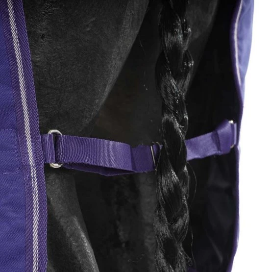 Robustes und haltbares 900D Polyester-Äußeres mit glänzendem Polyesterfutter. Die Faserfüllisolierung hält Ihr Pferd an kühleren Tagen warm.