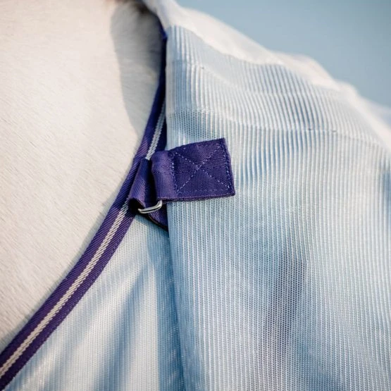 Die Amigo XL Bug Rug besteht aus starkem Polyester mit einem glatten Polyester-Schulterfutter, um Scheuern zu verhindern. Die Decke ist zu 85 % UV-beständig, nicht wasserdicht. Die multifunktionale Decke kommt mit einem abnehmbaren Nacken, der mit Klettverschluss zu befestigen ist und mit einem glatten Mähnenfutter aus Polyester. Die Decke hat einen Disc-Verschluss auf der Brust. Zusätzlich hat die Decke zwei Kreuzgurte. Schließlich hat die Decke lange Seiten mit einem Ausschnitt am Bauch für optimale Bewegungsfreiheit, einen extra langen Schweiflatz und einen einzelnen Beingurt. Dieses Modell ist ideal für breitere und/oder barocke Pferde.
