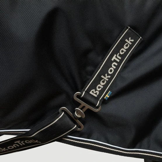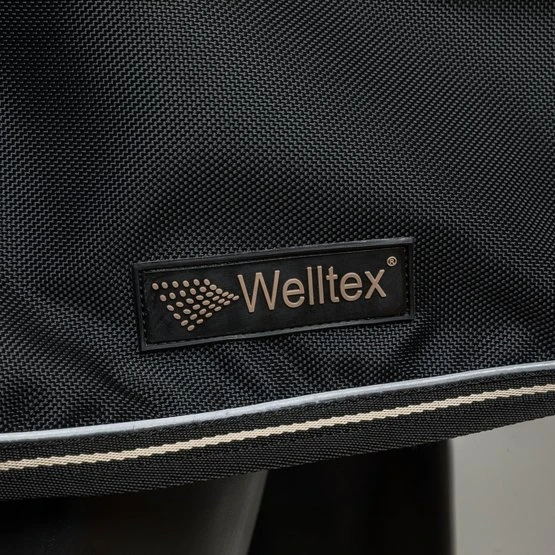 Die Decke ist in drei verschiedenen Dicken erhältlich: die Basisversion ohne Füllung, eine etwas dickere Version mit einer Füllung von 150 Gramm und eine warme Version mit einer Füllung von 300 Gramm, um den kalten Winterbedingungen gerecht zu werden. Sowohl die Decke als auch der Hals sind aus einem wasserabweisenden Stoff (5000 mm – 3000 g/m²) und in der inneren Schicht aus einem gewebten Welltex-Stoff®, der dem Fell des Pferdes am nächsten kommt. Das Futter schützt das Fell vor Scheuern und der Stoff sorgt für eine starke Reflexion der Infrarotenergie. Durch die große Decke kann das Welltex®-Material seine therapeutische Wirkung auf einen großen Teil des Pferdekörpers entfalten. Die Obsidian-Decke kann dabei helfen, die Durchblutung aller großen, großen Muskelgruppen zu steigern – was sie zu einer großartigen Wahl vor und nach jedem Training sowie während der Ruhe und Erholung macht. Der Welltex-Effekt kann zu einer verbesserten Gelenkbeweglichkeit und Bewegungsfreiheit beitragen. Die Decke wird durch doppelte Brustschnallen, gekreuzte Gurte und eine kunststoffummantelte Schweifkordel mit D-Ringen an Ort und Stelle gehalten. Die Decke kann einfach und sicher an Back on Track Rhyolite-Einlagen befestigt werden.