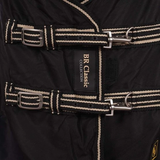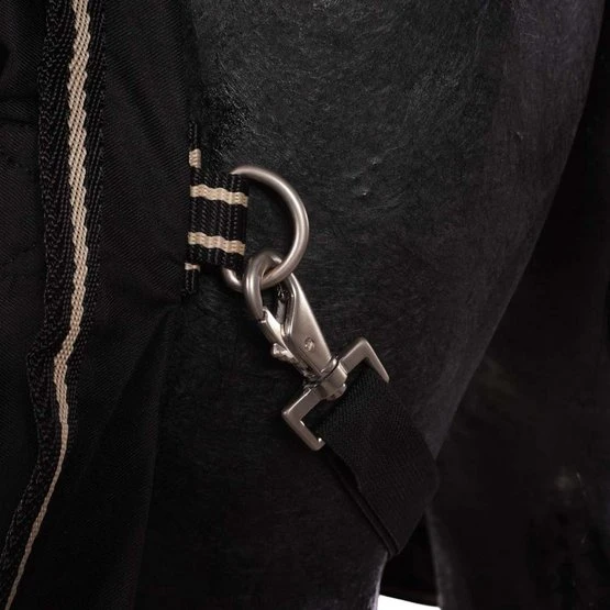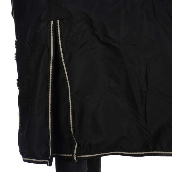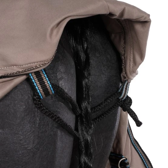 Diese anatomisch geformte Decke ist aus robustem Baumwollmischgewebe (65% Baumwolle, 35% Polyester) gefertigt. An der Brust ist die Decke mit einer zusätzlichen Baumwollmischgewebeschicht verstärkt. Die Decke verfügt über einen verstellbaren, doppelten Brustverschluss mit Schnellverschluss und Klettband. Darüber hinaus hat die Decke eine doppelt gestickte Rückennaht mit einer Paspel und ein Widerristpolster aus Fleece. Der Bauchgurt ist dank des PU-Kunstleder-Patches verstärkt. Weiter ist die Decke mit Gehfalten, Kreuzgurten mit Elastikeinsatz, die sowohl verstellbar als auch abnehmbar sind, und verstellbaren, abnehmbaren, elastischen Beinschnüren versehen. Die Decke ist mit Beschlägen aus Zink mit einer matten silberfarbenen Beschichtung ausgerüstet. Maschinenwaschbar bei 30°C.