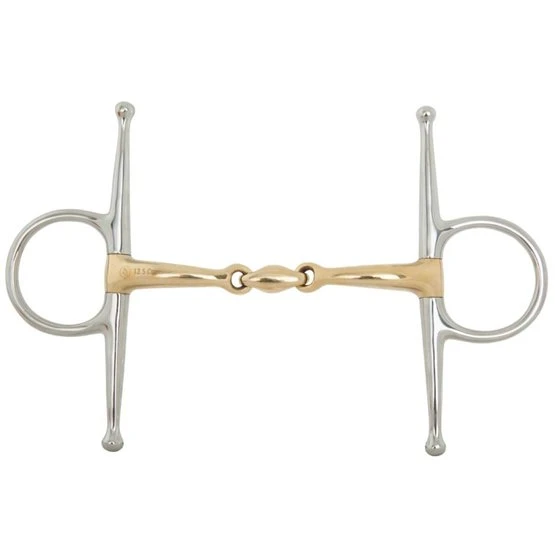 Diese qualitativ hochwertige, doppelt gebrochene Knebeltrense mit losen Schenkeln ist aus massivem Cuprigan mit Edelstahlringen und -schenkeln gefertigt. Cuprigan ist eine Legierung aus 89% Kupfer, 7% Aluminium, 3% Eisen und 1% Zink. Der Oxidationsprozess des Materials ergibt einen angenehmen Geruch und Geschmack. Die anatomische Form folgt der Form des Pferdemauls, was eine sanfte und gleichmäßige Druckverteilung ermöglicht. Die Kombination aus der Form und der einzigartigen Zusammensetzung von Cuprigan regt den Kauprozess und die Speichelbildung an, wodurch eine angenehme Verbindung mit dem empfindlichen Pferdemaul entstehen kann. Das Gebiss hat eine normale Wirkung auf das Maul. Das Mundstück ist 12 mm stark und die Schenkel haben eine Länge von 165 mm.