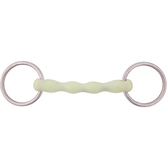Ungebrochene Wassertrense mit Apple Mouth Mundstück und Edelstahlringen, Ringe 65 mm. Gebissdicke von 20 mm.
