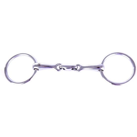 Doppelt gebrochenes Ponygebiss, massiver Edelstahl, Ringe 55 mm. Gebissdicke von 14 mm.