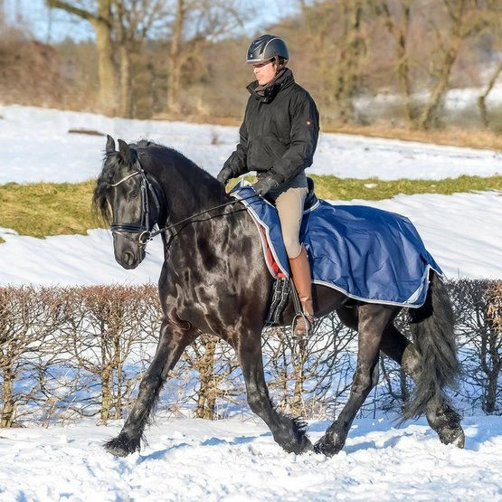 Dieses Ein- und Ausstiegslaken schützt das Pferd während des Trainings bei allen Wetterbedingungen.