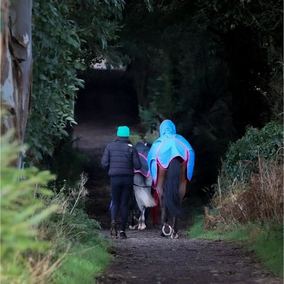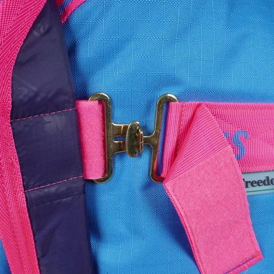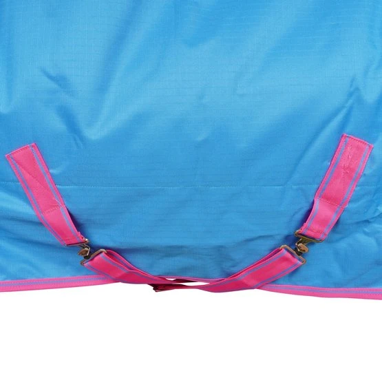 Die Decke hat einen festen Verschluss von 2 Haken, die Sie verbinden müssen. Sie können dies dann durch die überlappende Klettverschlussklappe verbergen und schützen. Mit den einstellbaren Kreuzschienen können Sie sie an Ihr Pferd anpassen. Ein Beinriemen ist bereits an der Decke befestigt. Dieser Beinriemen reicht aus, um die Decke am richtigen Ort zu halten, wenn ein Pferd rollt, wenn die Decke richtig sitzt. Wenn Sie immer noch ein Paar Beinriemen an der Decke haben möchten, können Sie diese anbringen. Die Sicherheitsgurte sind jedoch nicht im Lieferumfang enthalten.