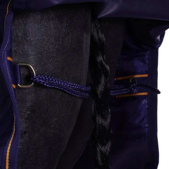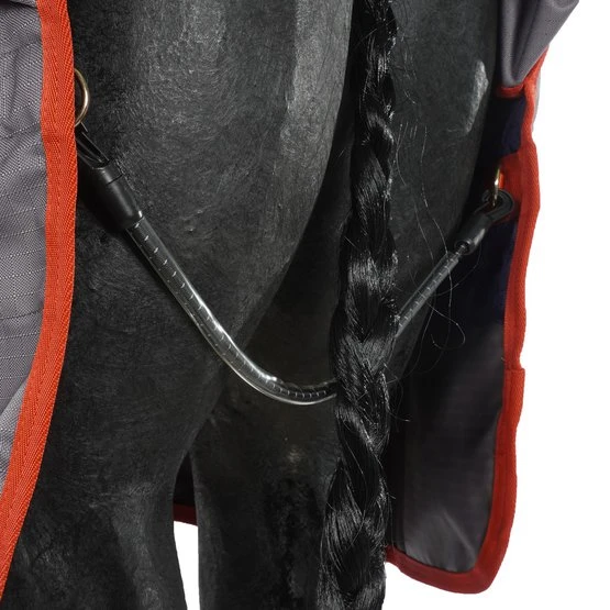 Die Bucas Irish Turnout 150 ist eine 150 g schwere, wasserdichte und atmungsaktive Outdoor-Decke. Die Decke hat eine Außenseite aus 1200D Ripstop-Polyester und ein Nylonfutter mit Seidengefühl. Die Decke hat vorne einen Schnappverschluss mit einem geraden Haken-/Ösenverschluss mit Klettverschluss. Darüber hinaus hat die Decke verstellbare Kreuze, Ösen zum Anbringen von Beingurten (nicht im Lieferumfang enthalten), Schulterfalten, einen Schweiflatz und einen Beingurt.