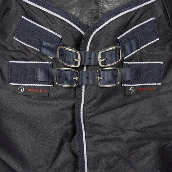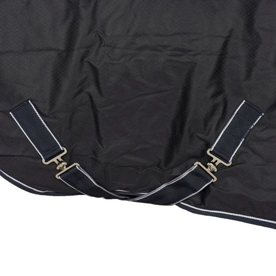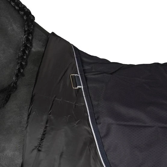 Die Regendecke verfügt über eine versiegelte Rückennaht, die für eine perfekte Passform sorgt. Die Decke hat genau das gleiche Modell wie die bekannte Dominick-Stalldecke, nur der Außenstoff besteht aus einem 1000D wasserdichten Material. Der Außenstoff hat eine Wasserdichtigkeit von 3000 mm, wodurch die Decke für Pferde geeignet ist, die täglich mehrere Stunden draußen laufen. Wenn Sie eine Decke suchen, die extrem wasserdicht ist, empfehlen wir Ihnen die Dominick Outdoor, die Decken der Outdoor-Kollektion haben keine versiegelte Rückennaht und eine Wasserdichtigkeit von 5000 mm.