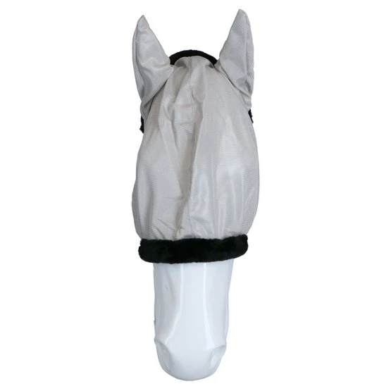 Fliegenmaske aus Polyesternetz 120 g, komplett mit schwarzem synthetischem Schaffell veredelt.