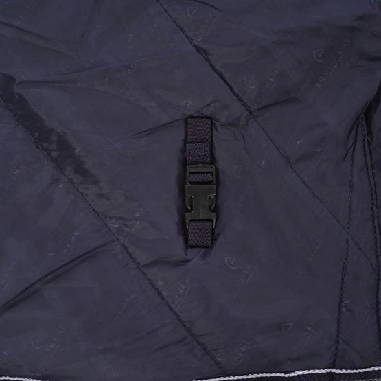 Hergestellt aus wasserdichtem und atmungsaktivem 600-Denier-Ripstop-Polyester, gefüttert mit antistatischem und abriebfestem Nylon. Mit doppelten Klettverschlüssen am elastischen Träger befestigen. Wird an einer Decke mit 3 Gummibändern mit einem zentralen Klick und 2 Klettbändern an den Seiten befestigt. Reflektierendes Logo.