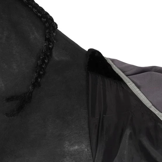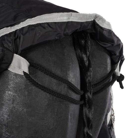 Wasserdichte und atmungsaktive Outdoor-Decke aus 1200 Denier Ripstop-Recycling-Polyester mit verklebten Nähten und Nylonfutter. Ausgestattet mit einem sehr großen wasserdichten Schweiflatz mit Reflexband, Komfortfalten, einem synthetischen Lammfell in der Decke, niedrigen Kreuzgurten und Beingurten. EasyClip-Brustverschluss mit Schnellverschluss, verstärkt mit Klettverschluss. Eine Größenangabe auf dem Gummipatch.