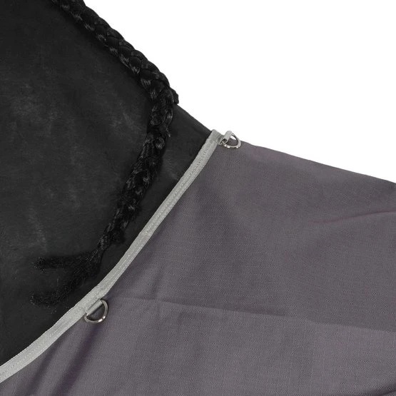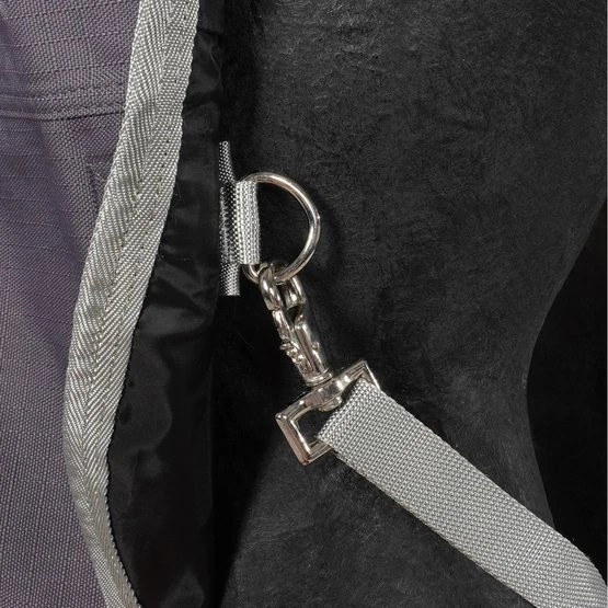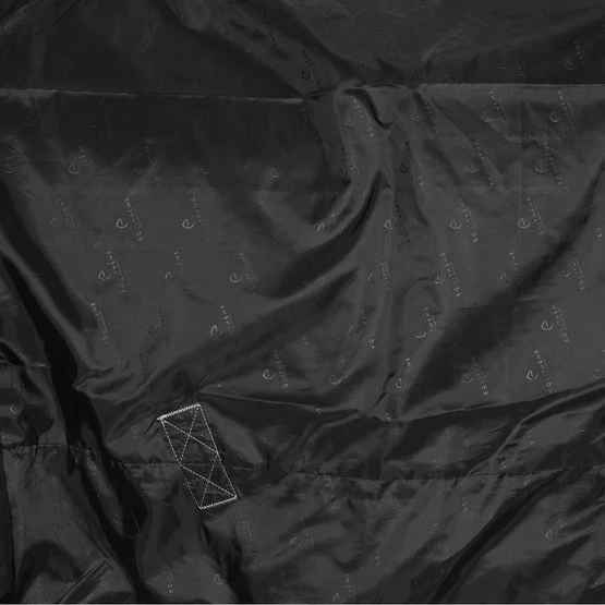 Wasserdichte und atmungsaktive Outdoor Decke aus 1200 Denier Ripstop recyceltem Polyester mit verschweißten Nähten und Taftfutter. Ausgestattet mit einem sehr großen, wasserdichten Schweiflatz mit Reflektorband, Gehfalten, einem innenliegenden Widerristpad aus synthetischem Lammfell, tief angesetzten Kreuzgurten und Beinschnüren. Quick Release EasyClip Brustverschluss durch Klettband verstärkt, Größenangabe auf Gummi-Patch.