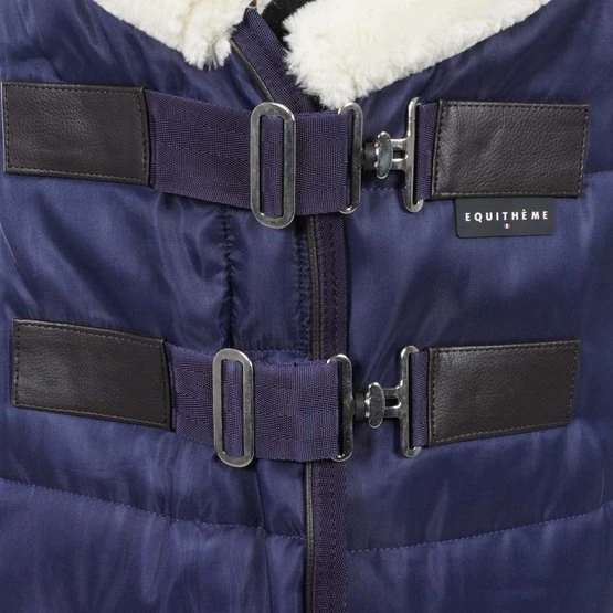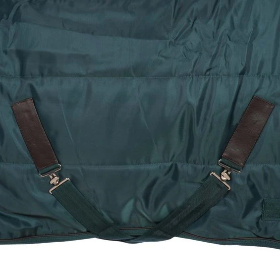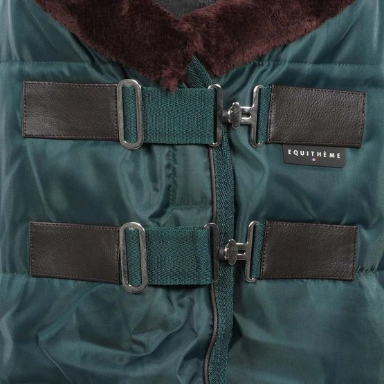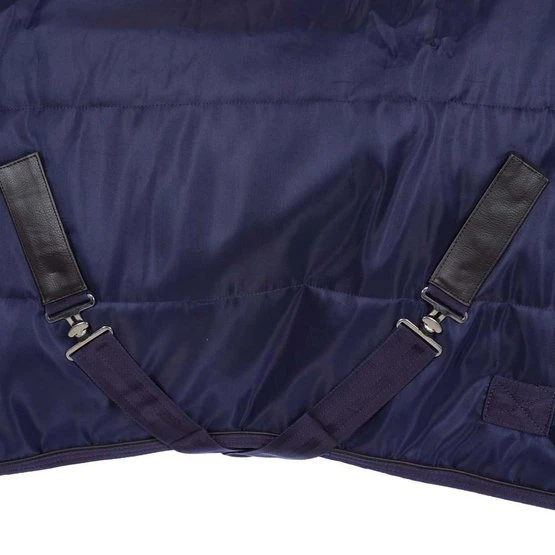 Stabiler Teppich mit synthetischem Schaffellhals, 200 g / m2 Polyfill und Polycotton-Futter. Low Cross Surcingles und Heckgurt. Doppelt verstellbare männliche / weibliche Schnallen mit Klettverschluss an der Brust. Diese Decke ist ideal für den Stall und kombiniert Komfort und Stärke. Zusammensetzung: 100% Polyester.