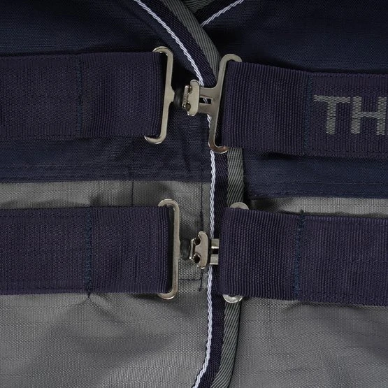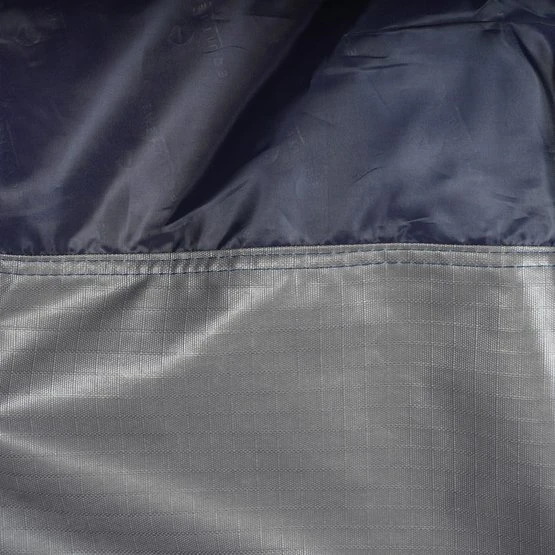 Wasserdichte und atmungsaktive Outdoor-Decke aus 600 Denier Ripstop-Polyester mit verklebten Nähten. Hat einen sehr großen wasserabweisenden Schweiflatz, eine Polsterung aus synthetischem Lammfell am Widerrist, niedrige Kreuzgurte und einen verstellbaren Hüftgurt. Schnellverschluss auf der Brust, verstärkt mit Klettverschluss.