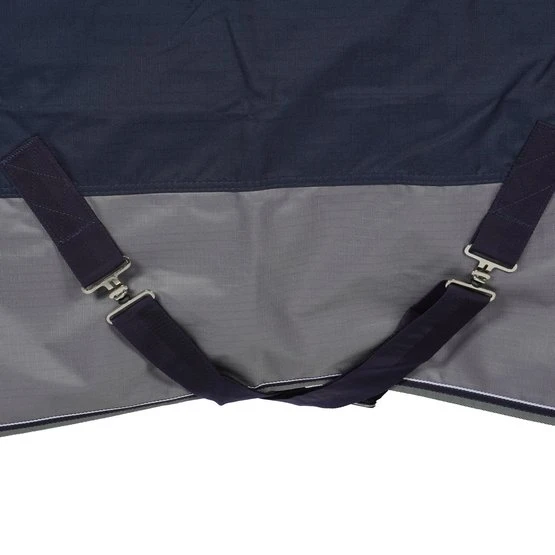 Wasserdichter und atmungsaktiver Outdoor-Teppich aus 600-Denier-Ripstop-Polyester mit Klebebandnähten. Verfügt über eine sehr große wasserabweisende Heckklappe, eine synthetische Schaffellpolsterung am Widerrist, niedrige Kreuzstreifen und einen verstellbaren Gesäßriemen. Mit Fleecefutter, schnellem Verschluss auf der Brust, verstärkt mit Klettverschluss.