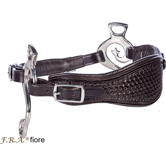 FRA Gebissloses System 2: Gebisslose Zaumzeuge sind nicht neu! Jahrhundertelang galt ein gebissloses Zaumzeug als selbstverständlich, bevor man überhaupt daran dachte, dem Pferd etwas ins Maul zu legen, legte man einfach etwas darum. Damals reichte ein Seil als Halfter und so entstand das erste gebisslose Zaumzeug. In Kombination mit Stützgewicht, Bein- und Tasthilfe hält die Reiterhand über die Zügel den Kontakt nicht mit dem Maul, sondern mit dem Kopf des Pferdes. Diese Zügelhilfen werden an Nase, Hals und/oder Wangen weitergegeben. FRA® bitless bietet Ihnen eine Reihe von gebisslosen Trensen: Größen von Shetty bis Shire, in verschiedenen Designs und Materialien von Baumwolle bis Leder. FRA Gebissloses System 2: Funktionsprinzip: Druck auf die Nase Allgemeines: Pferde reagieren von Natur aus reflexartig auf Druck auf ihre Nase, jedes unverdorbene Pferd hört auf Hilfe, die durch Druck auf die Nase ausgeübt wird. Eignung: Mit dem Zaumzeug ist es möglich, eine raffinierte, sehr klare Kommunikation aufzubauen. Das Zaumzeug gibt sehr gute Unterscheidungssignale und der erfahrene Reiter wird sich in relativ kurzer Zeit mit diesem gebisslosen Zaumzeug wohl fühlen. Generell bietet das Zaumzeug gute Einsatzmöglichkeiten bei empfindlichen Pferden und insbesondere beim Einreiten von Jungpferden.