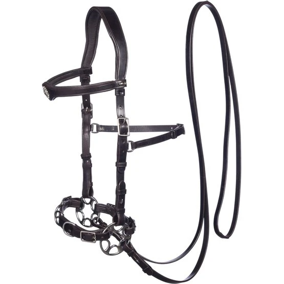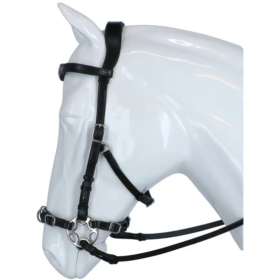 FRA Gebissloses System 2: Gebisslose Zaumzeuge sind nicht neu! Jahrhundertelang galt ein gebissloses Zaumzeug als selbstverständlich, bevor man überhaupt daran dachte, dem Pferd etwas ins Maul zu legen, legte man einfach etwas darum. Damals reichte ein Seil als Halfter und so entstand das erste gebisslose Zaumzeug. In Kombination mit Stützgewicht, Bein- und Tasthilfe hält die Reiterhand über die Zügel den Kontakt nicht mit dem Maul, sondern mit dem Kopf des Pferdes. Diese Zügelhilfen werden an Nase, Hals und/oder Wangen weitergegeben. FRA® bitless bietet Ihnen eine Reihe von gebisslosen Trensen: Größen von Shetty bis Shire, in verschiedenen Designs und Materialien von Baumwolle bis Leder. FRA Gebissloses System 2: Funktionsprinzip: Druck auf die Nase Allgemeines: Pferde reagieren von Natur aus reflexartig auf Druck auf ihre Nase, jedes unverdorbene Pferd hört auf Hilfe, die durch Druck auf die Nase ausgeübt wird. Eignung: Mit dem Zaumzeug ist es möglich, eine raffinierte, sehr klare Kommunikation aufzubauen. Das Zaumzeug gibt sehr gute Unterscheidungssignale und der erfahrene Reiter wird sich in relativ kurzer Zeit mit diesem gebisslosen Zaumzeug wohl fühlen. Generell bietet das Zaumzeug gute Einsatzmöglichkeiten bei empfindlichen Pferden und insbesondere beim Einreiten von Jungpferden.