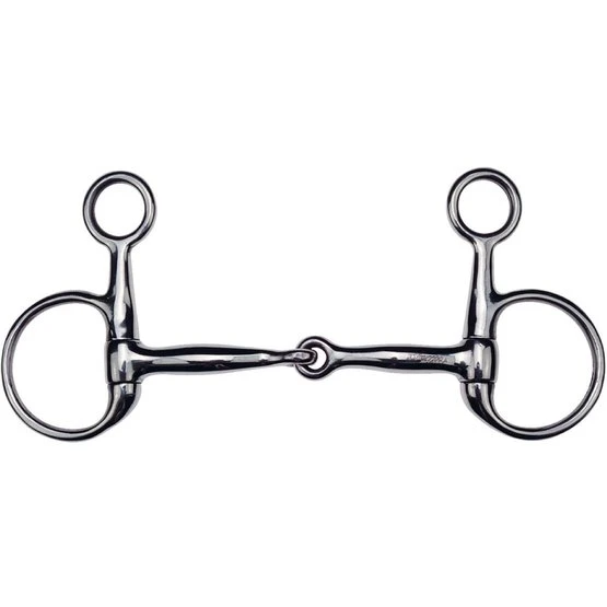 Aus Edelstahl. Erleichtert die Beugung des Halses durch einen leichten Hebeleffekt. Ermöglicht die Aufzucht von Pferden, die zu viel Gewicht auf die Schultern legen. Durchmesser der Ringe: 45 mm, Mundstück: massiv