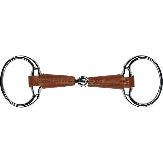 Aus Edelstahl gefertigt, mit Leder bezogen. Mit dickem, gebrochenem Mundstück.
