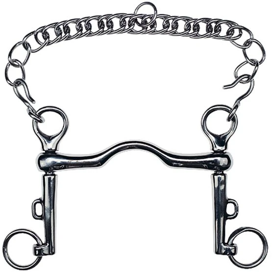 Dressurstange aus Edelstahl mit Pumpwirkung, Mundstück mit leichtem Anschluss. Da das Mundstück und die Schere voneinander getrennt sind, kann das Pferd mit seinem Gebiss spielen. Dicke des Mundstücks: 15 mm, Länge des Kiefers: 115 mm, Mundstück: fest