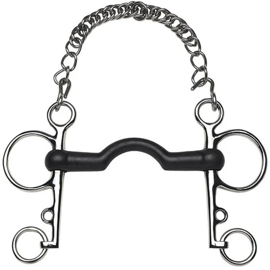 Aus Edelstahl, Anschluss mit Gummi überzogen. Dünnes Mundstück. Dicke des Mundstücks: 14 mm, Länge des Kiefers: 140 mm, Mundstück: fest