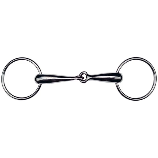 Aus Edelstahl. Ein einfaches und weiches Stück. Durchmesser der Ringe: 45 mm, Mundstück: hohl