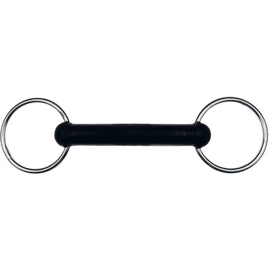 Ungebrochen, aus Gummi. Zur vorbereitenden Dressur oder zum Lungern. Dicke des Mundstücks: 18 mm, flexibel, Durchmesser der Ringe: 65 mm, Mundstück: massiv