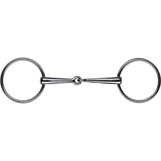 Aus Edelstahl mit massivem feinem Mundstück mit großen Ringen für einen kanalisierenden Effekt. Kann alleine oder auf einer Kandare benutzt werden, für unempfindliche Pferde.