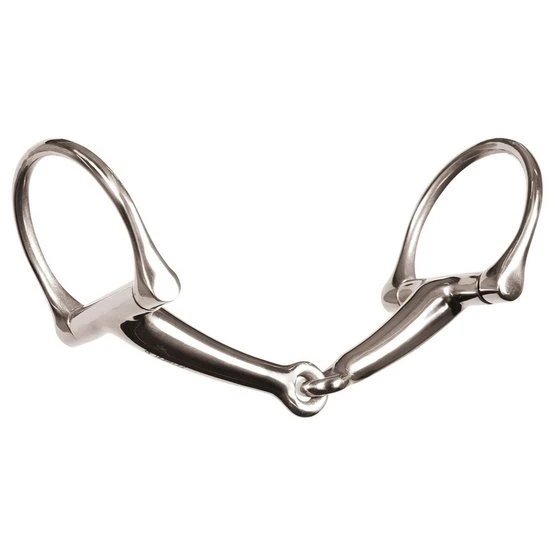 Die D-förmigen Ringe verhindern, dass das Gebiss durch das Pferdemaul gezogen werden kann, es liegt somit auch ruhiger im Maul. Die fixierten Ringe sorgen für eine zusätzliche seitliche Anlehnung. Bei Pferden, die dazu neigen über die Schulter auszubrechen, kann dies sehr hilfreich sein.