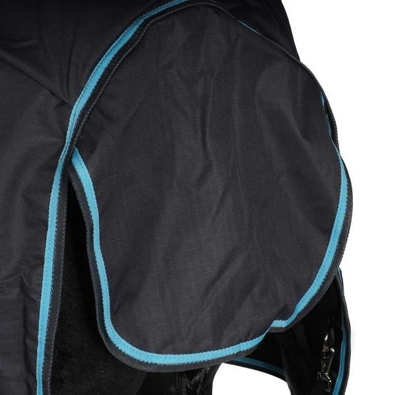 Outdoordecke mit T/C-Futter. Nahtloser Rücken, 200g Polyfill-Füllung. Mit Gehfalte und Schweiflatz. Doppelter Schnellverschluss, Nylonfutter an Brust, Kreuzgurten und abnehmbaren Schweifriemen. Gehfalte, geschweißte Seitennähte. D-Ringe am Hals für Befestigung eines Halsteils. Wassersäule: 2000mm, atmungsaktive Leistu