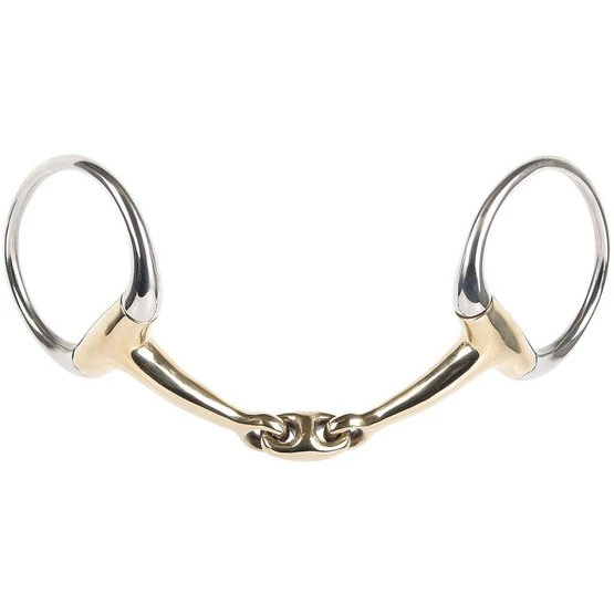 Diese doppelt gebrochene Olivenkopftrense ist anatomisch geformt, damit sie gut im Maul liegt. Das Mundstück ist aus Goldmessing hergestellt, dadurch wird diese Trense gut vom Pferd angenommen und regt zum Kauen an. Für eine noch bessere Kommunikation zwischen Reiter und Pferd.