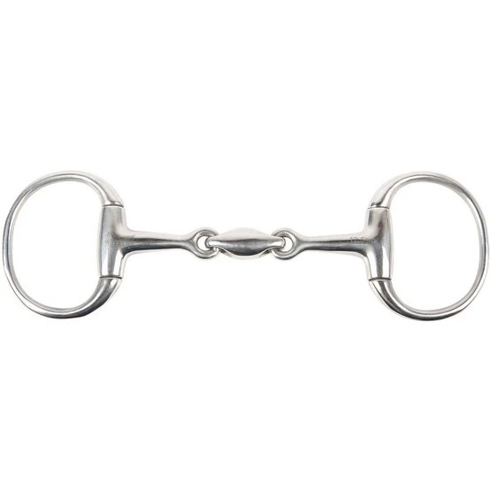 Doppelt gebrochene Olivenkopftrense mit ovalem Mittelstück und flachen Ringen