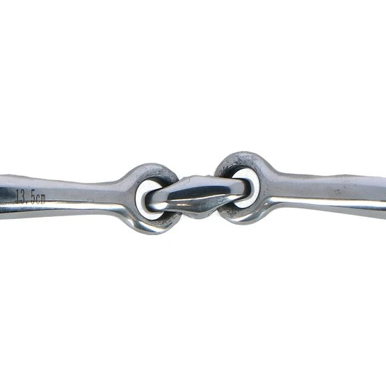 Trensengebiss, das die Flexibilität einer Wassertrense mit der Festigkeit eines Olivenkopfgebisses kombiniert. Das Gebiss liegt relativ ruhig im Maul und verhindert das Einklemmen der Maulwinkel.