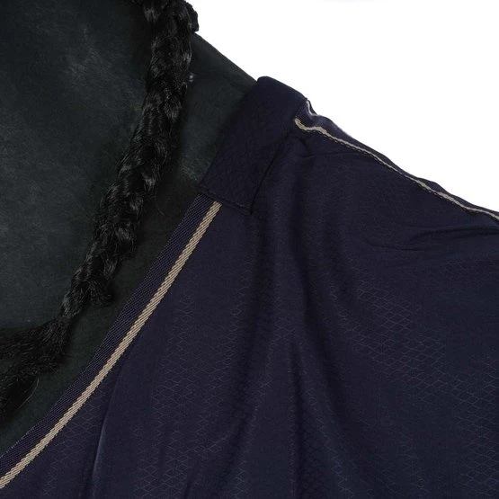 Diese Sommerdecke besitzt einen doppeltem Verschluss an der Brust, teilweise elastische Kreuzgurte und halbelastische Schweifriemen