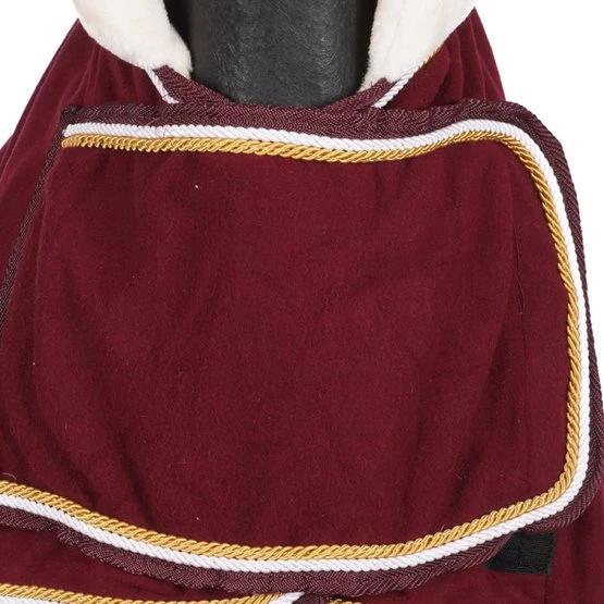 Luxuriöse 400 Gramm Fleece Showdecke mit Teddyfellkragen und Brustklappe, Kreuzbegurtung und 2 Kordeln.