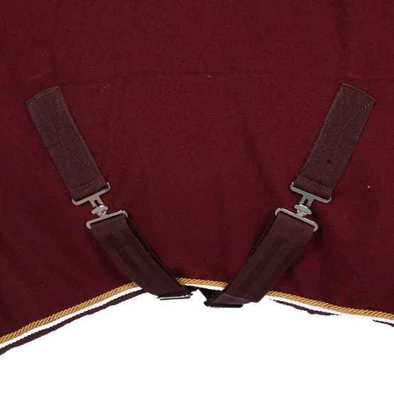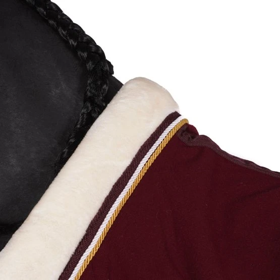 Luxuriöse 400 Gramm Fleece Showdecke mit Teddyfellkragen und Brustklappe, Kreuzbegurtung und 2 Kordeln.