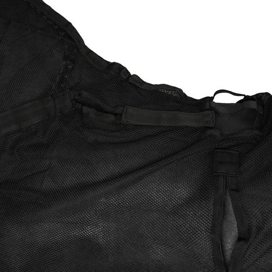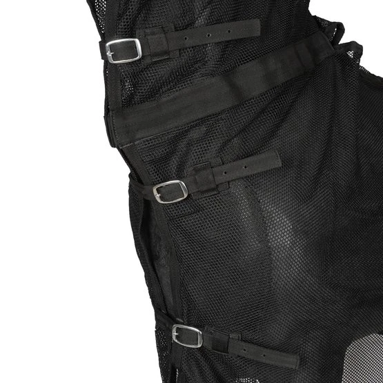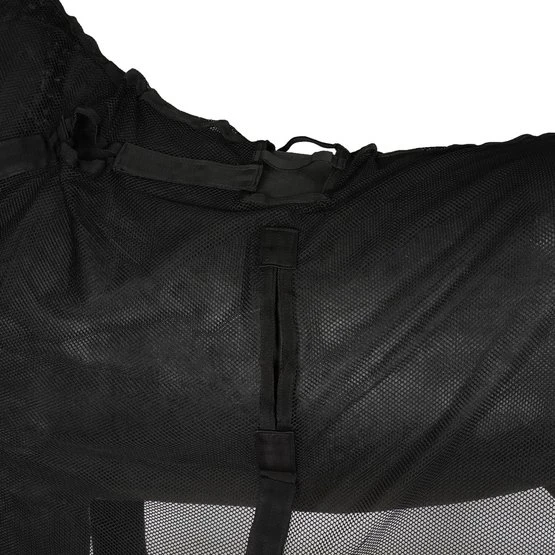 Die Decke ist so konzipiert, dass Sie sie an- und ausziehen können, ohne das Geschirr lösen zu müssen! Die Decke besteht aus Baumwoll-Mesh-Gewebe und hat 3 Schnallenverschlüsse an Brust/Nacken, Gesäßriemen und eine Schweifkordel. Mittels stabiler Klettverschlüsse im Nacken, Widerrist und an der Lammöffnung lässt sich die Decke komplett abnehmen, ohne das Geschirr lösen zu müssen.