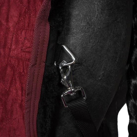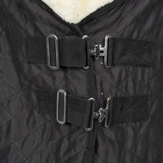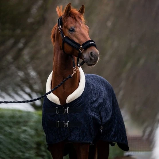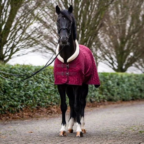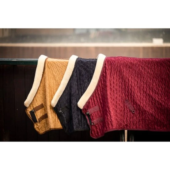 Luxuriöse Turnierdecke aus Waffelsamt, mit Teddyfellkragen und Kreuzbegurtung und 2 dekorativen Kordeln.