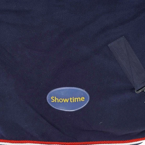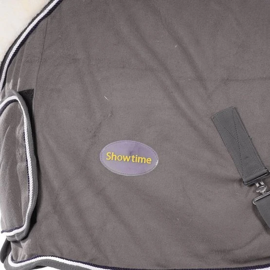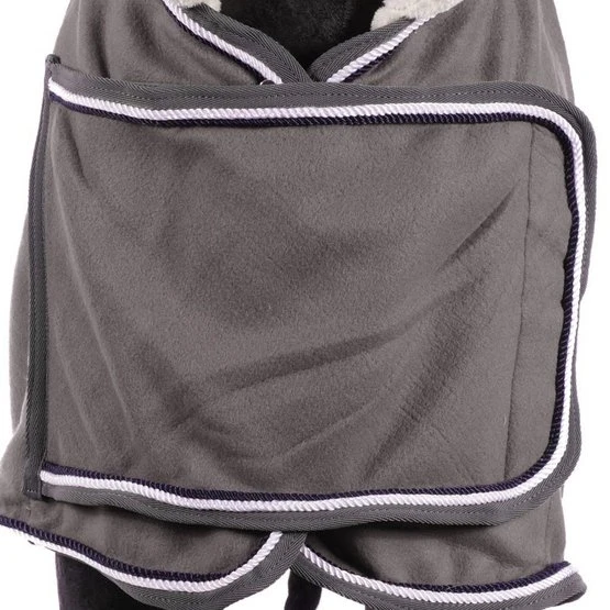 Luxuriöse 400 Gramm Fleece Showdecke mit Teddyfellkragen und Brustklappe, Kreuzbegurtung und 2 Kordeln.