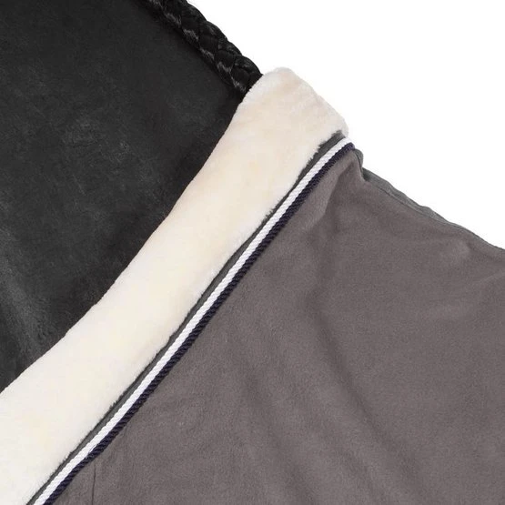 Luxuriöse 400 Gramm Fleece Showdecke mit Teddyfellkragen und Brustklappe, Kreuzbegurtung und 2 Kordeln.