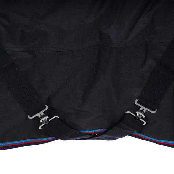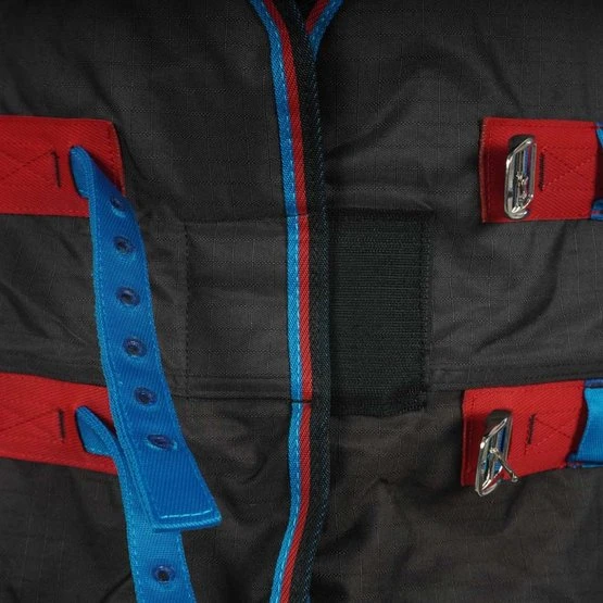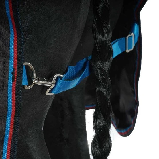 Die Gurte sollten fest genug sein, um den Teppich an Ort und Stelle zu halten, aber nicht so fest, dass sich die Form des Teppichs auf dem Pferderücken verzieht. Wenn sie zu eng sind, können sie Druckpunkte um die Brust und den Widerristbereich des Pferdes verursachen.