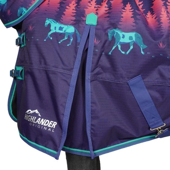 Für kühlere Tage oder für robuste Pferde, die bei Kälte etwas Schutz benötigen, bietet der Highlander Original 100g Combo Weichenteppich leichte Wärme. Die integrierte Konturhalsabdeckung wird mit doppelseitigen Touch-Close-Trägern zum Schutz von oben nach hinten befestigt. Hauptmerkmale: ShireTex® 600 Denier Ripstop, wasserdichtes und atmungsaktives Äußeres mit verschweißten Nähten, tiefen Schulterzwickeln, vollständig gefüttertem Brustverschluss mit zwei Schnallen, verstellbaren Kreuzgurten, verstellbarem Filetriemen, integrierten Beinriemenschlaufen, Heckklappe. WarmaRug-kompatibel – Verbessern Sie die Wärmebewertung dieses Teppichs mit separaten Teppichauskleidungen in 100 g oder 200 g. PFC-freies Äußeres? ShireTex® Outer bietet nachhaltigen Wetterschutz ohne die Verwendung umweltschädlicher PFCs.