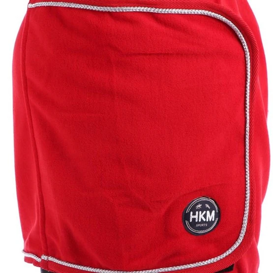 Die HKM Fleecedecke mit Kragen ist atmungsaktiv und sorgt für eine schnelle Feuchtigkeitsaufnahme. Die Decke besteht aus doppelseitigem Fleece, 100% Polyester. Die Decke hat einen Metall Brustverschluss mit großem Klettverschluss, verstell- und abnehmbare Kreuzgurte, einen extra dicken und weichen Kragen und hinten ein dekoratives Kordel Design. Sie ist maschinenwaschbar bei 30 Grad und trocknergeeignet.