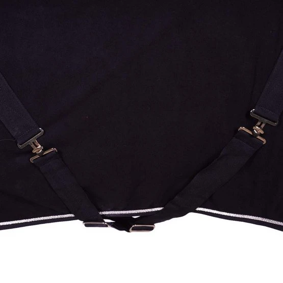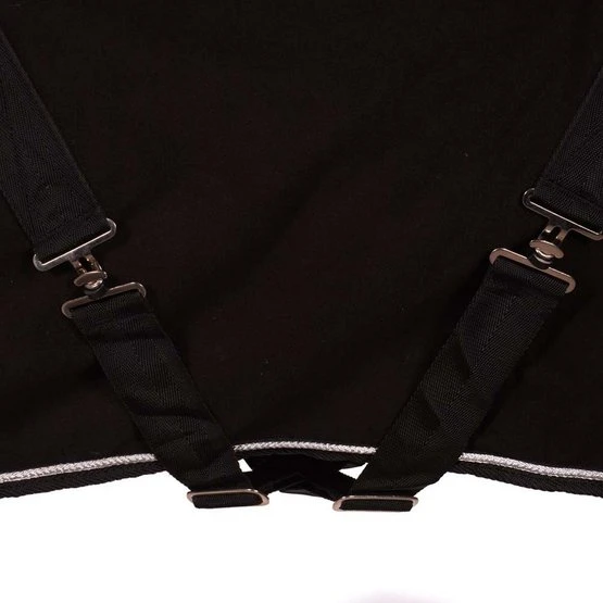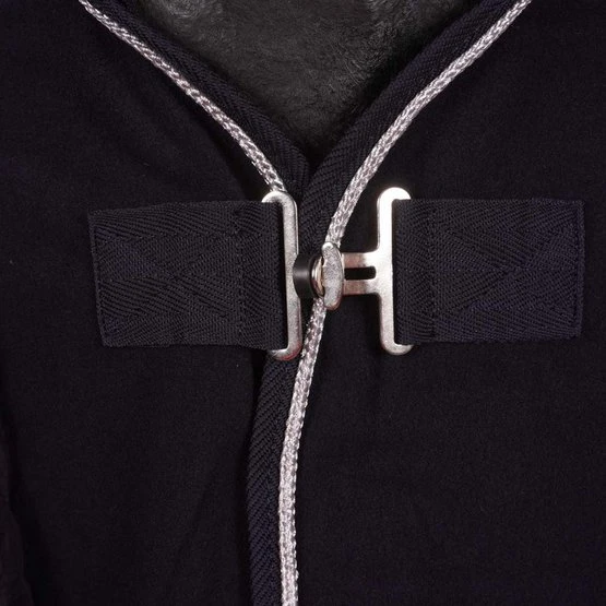 Die HKM Fleecedecke mit Kragen ist atmungsaktiv und sorgt für eine schnelle Feuchtigkeitsaufnahme. Die Decke besteht aus doppelseitigem Fleece, 100% Polyester. Die Decke hat einen Metall Brustverschluss mit großem Klettverschluss, verstell- und abnehmbare Kreuzgurte, einen extra dicken und weichen Kragen und hinten ein dekoratives Kordel Design. Sie ist maschinenwaschbar bei 30 Grad und trocknergeeignet.