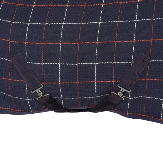 Die HKM Stalldecke mit Waffelstruktur ist aus atmungsaktiver 100% Baumwolle gefertigt. Die Decke hat eine verstellbare Schnalle auf der Brust, Widerristschutz, Kreuzgurte mit Metallkupplungsverschlüssen und ein Beingurt. Die Decke besteht aus glattem, pflegeleichtem Material. Waschmaschine beständig gegen 30 Grad.
