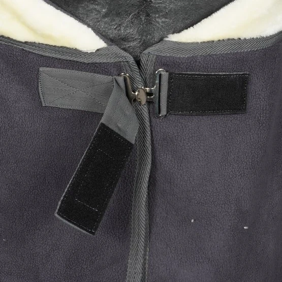 Luxuriöse Fleecedecke mit extra breitem Webpelzkragen. Diese Decke verfügt über einen verstellbaren Einzelschnallenverschluss vorne, gekreuzte Bauchgurte und eine abnehmbare Schweifkordel.