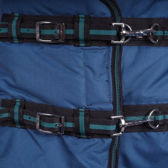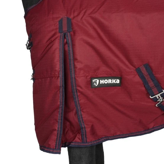 Diese Horka Outdoor Decke Dime 600D kann mit einem losen Hals kombiniert werden. Die Decke hat eine 200 Gramm Füllung und ein Polyesterfutter. Es gibt einen doppelt verstellbaren Verschluss auf der Brust, die Spannbänder haben ein elastisches Ende und Gummianschläge. Der Widerrist ist mit Fell gefüttert und es gibt Ringe, an denen der Hals mit Klettverschluss befestigt werden kann.